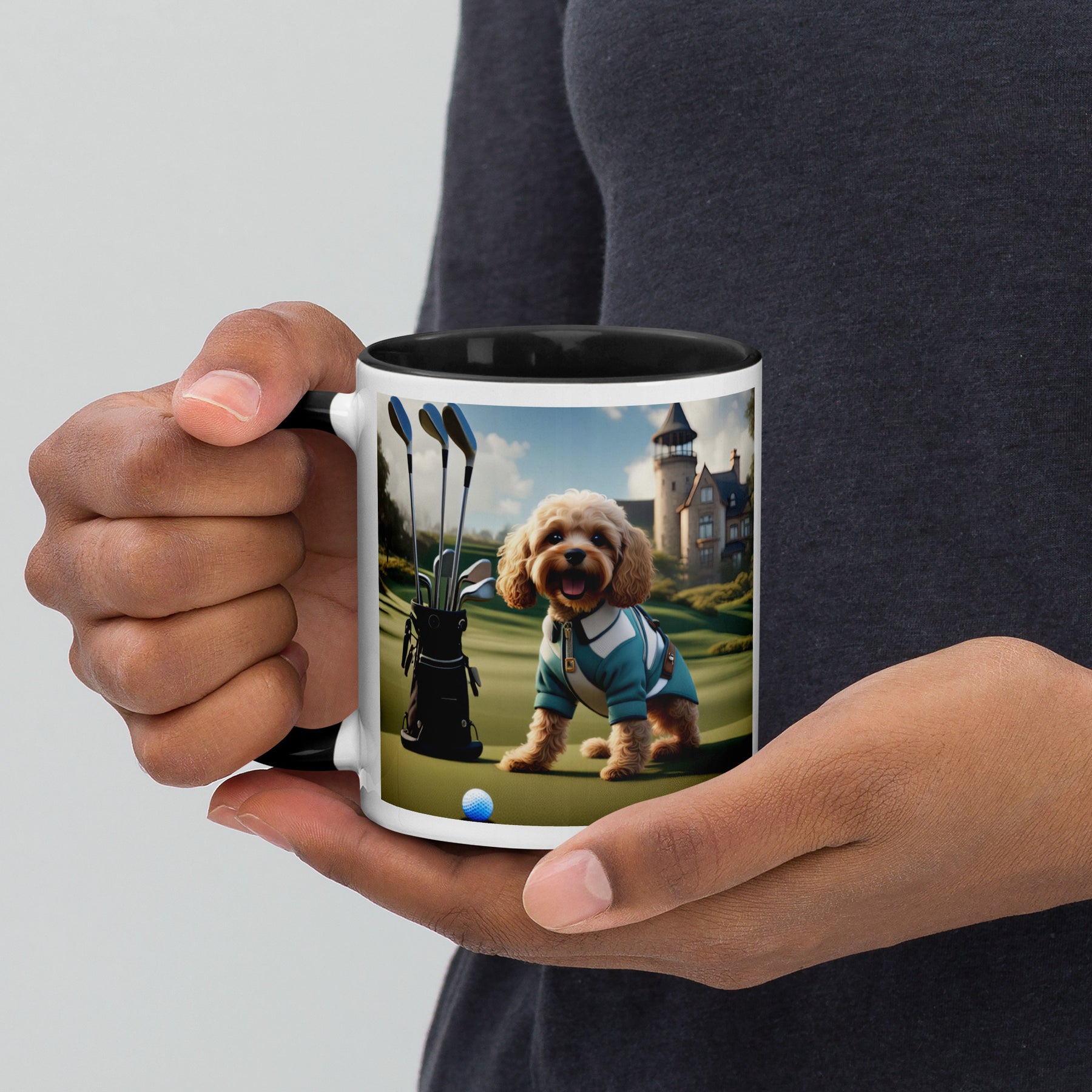 Cavapoo Golfer- Mug with Color Inside v6